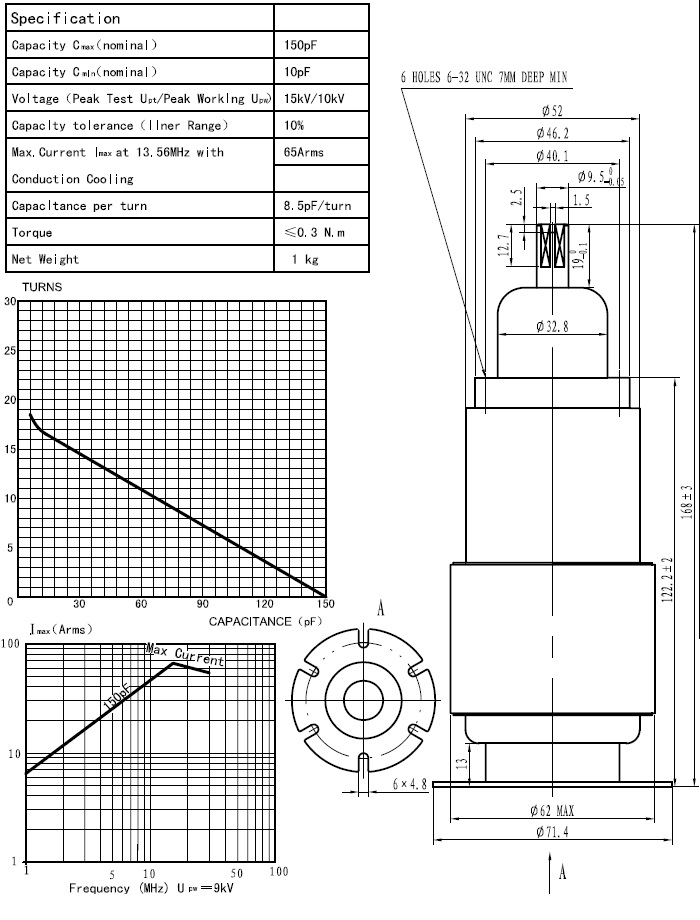 产品名称:可变真空电容器CKTB150/10/65