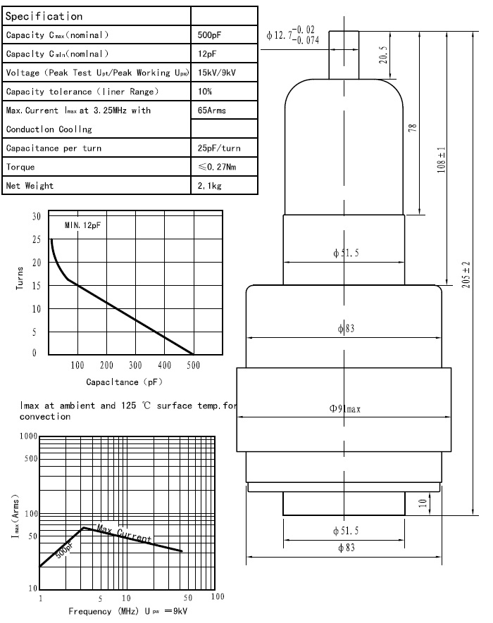 可变真空电容器产品列表 您现在的位置:首页 >> 产品介绍 >> 可变真空电容器CKTB500/10/65
