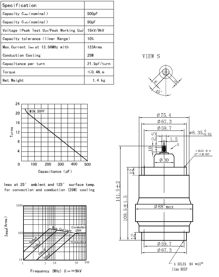 CKTB500/10/123可变陶瓷高压真空电容器采用陶瓷外壳、真空介质、具有耐压高、体积小、Q值高、性能稳定可靠、价格低廉等特点,广泛用于感应加热、介质加热、通讯、广播等设备。