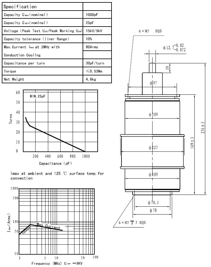 可变真空电容器产品列表 您现在的位置:首页 >> 产品介绍 >> 可变真空电容器CKTB1000/10/80