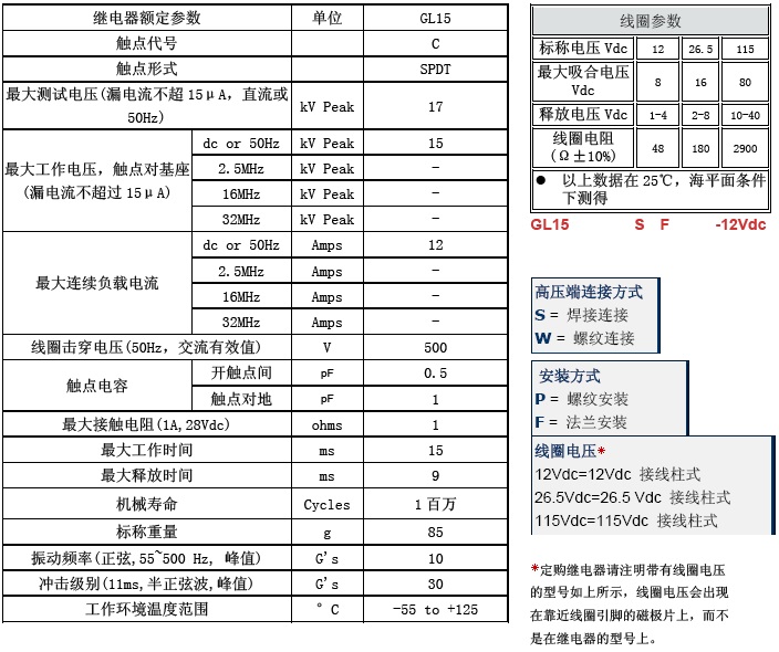 充六氟化硫气体,用于闭合电源开关,电容器放电应用中具有长寿命。两种可选安装方式,法兰式和螺栓式 螺栓式或焊接式高压接头,接线简单 可更换线圈,使产品功能实现多样化 可以直接替换KILOVAC的KC-15、KC-16高压继电器 负载开关应用,请向工厂咨询。