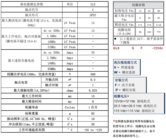国力与JPK型号对照表 您现在的位置:首页 >> 产品介绍 >> 真空继电器GL8