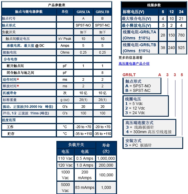 高压继电器产品列表