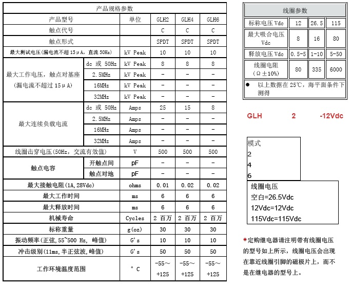 GLH 8kV 系列特点 继电器用螺母固定,易于安装;可用户更换线圈,使产品功能多样化。 GLH4 非负载开关 耐磨钨触点,适用于频繁操作场合 真空介质,负载下开断能够有效灭弧 可替代KILOVAC的HC-4高压继电器,替代JENNINGS的RJ1A真空继电器。