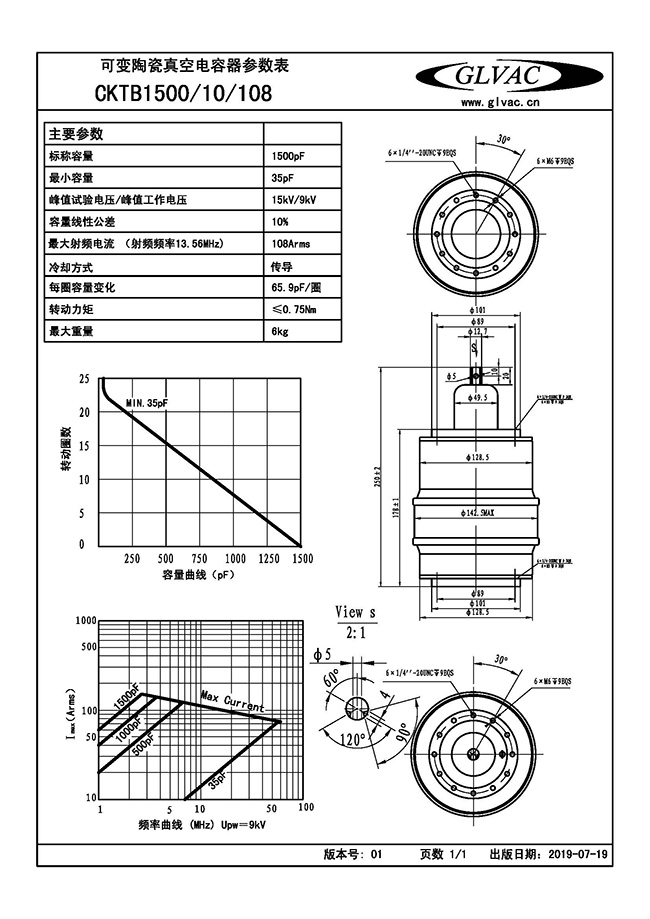 可变真空电容器产品列表 您现在的位置:首页 >> 产品介绍 >> 可变真空电容器CKTB1500/10/108
